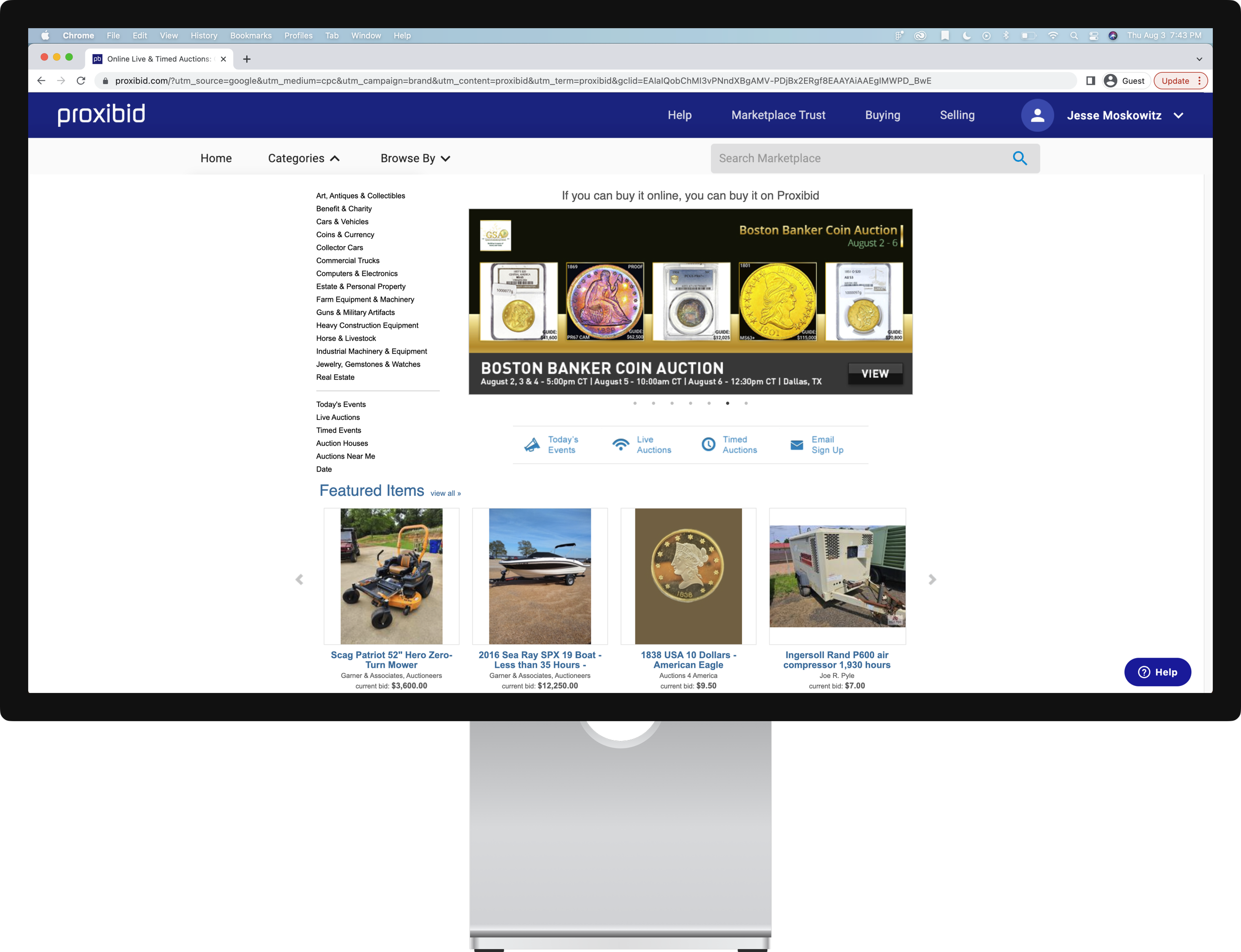 We modernized Proxibid’s primary navigation, standardizing it to e-commerce industry standards, implementing Hammer for consistent styling and interactions.