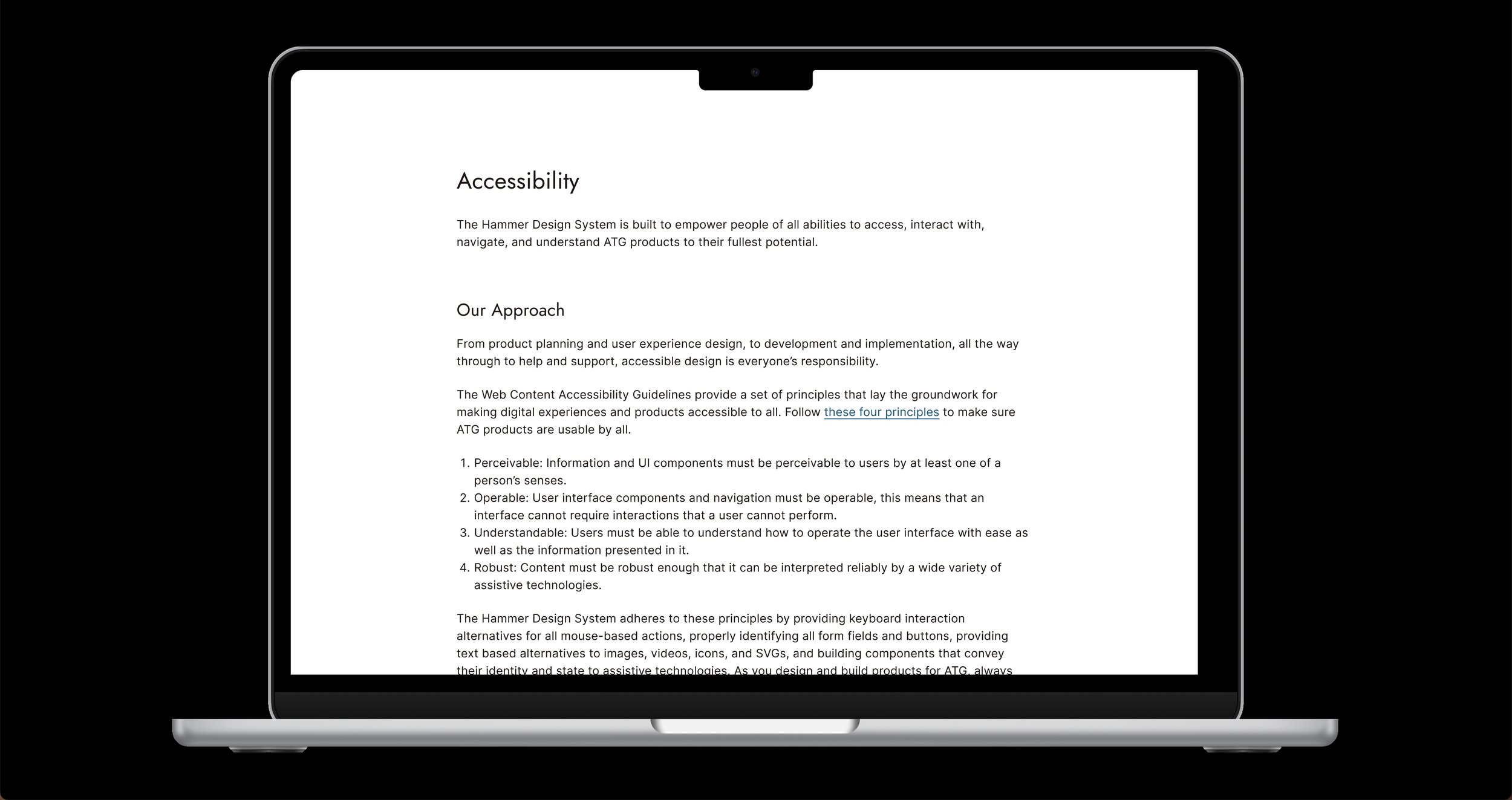 I educated peers and collaborators on the importance of accessibility in product experiences through group learning sessions and a centralized documentation hub.